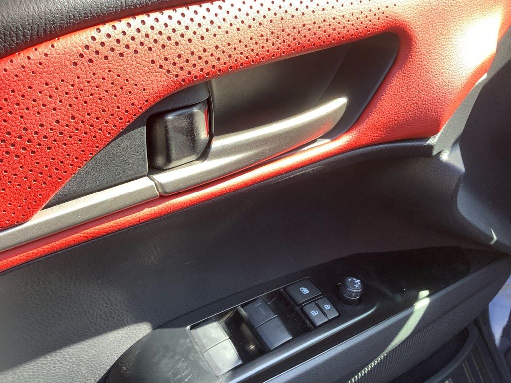 Cockpit Red Leather, 4-Wheel Disc Brakes, 6 Speakers, ABS brakes, Air Conditioning, All Weather Floor Protection, Alloy wheels, AM/FM radio: SiriusXM, Apple CarPlay/Android Auto, Auto High-beam Headlights, Auto-dimming Rear-View mirror, Automatic temperature control, Brake assist, Bumpers: body-color, Delay-off headlights, Driver door bin, Driver vanity mirror, Dual front impact airbags, Dual front side impact airbags, Electronic Stability Control, Emergency communication system: Safety Connect (5-year trial), Exterior Parking Camera Rear, Four wheel independent suspension, Front anti-roll bar, Front Bucket Seats, Front Center Armrest, Front dual zone A/C, Front reading lights, Fully automatic headlights, Garage door transmitter: HomeLink, Heated door mirrors, Heated Front Seats, Heated front seats, Heated steering wheel, Illuminated entry, Knee airbag, Leather Seat Trim, Leather Shift Knob, Leather steering wheel, Low tire pressure warning, Navigation system: Drive Connect (1 year trial) includes Cloud Navigation with real time traffic and Google POI, Occupant sensing airbag, Outside temperature display, Overhead airbag, Overhead console, Panic alarm, Panoramic Glass Roof, Passenger door bin, Passenger vanity mirror, Power door mirrors, Power driver seat, Power passenger seat, Power steering, Power windows, Radio data system, Radio: 12.3 Toyota Multimedia Audio, Rear anti-roll bar, Rear reading lights, Rear seat center armrest, Rear window defroster, Remote keyless entry, Security system, Speed control, Speed-sensing steering, Split folding rear seat, Spoiler, Steering wheel mounted audio controls, Telescoping steering wheel, Tilt steering wheel, Traction control, Trip computer, Turn signal indicator mirrors, Variably intermittent wipers, and Wheels: 19 Smoked Gray and Black-Finished Alloy.