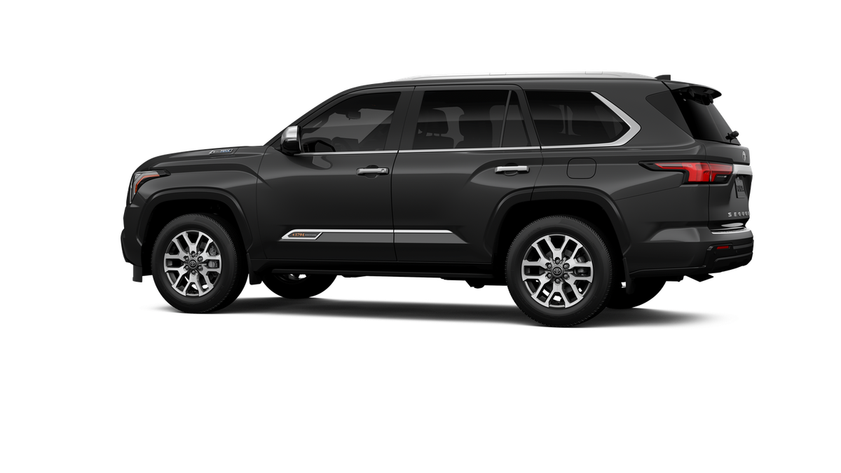 - Bright-chrome "SEQUOIA" rear door badge, chrome "1794 EDITION" door badge and garnish, door handles, window molding and mirror caps; color-keyed tailgate spoiler; black-painted overfenders