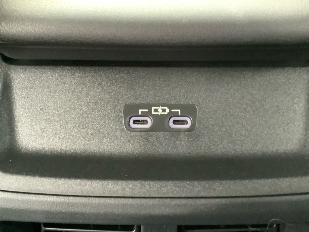 - Center console with covered storage compartment, two cup holders, two Qi-compatible wireless chargers and front lower storage tray