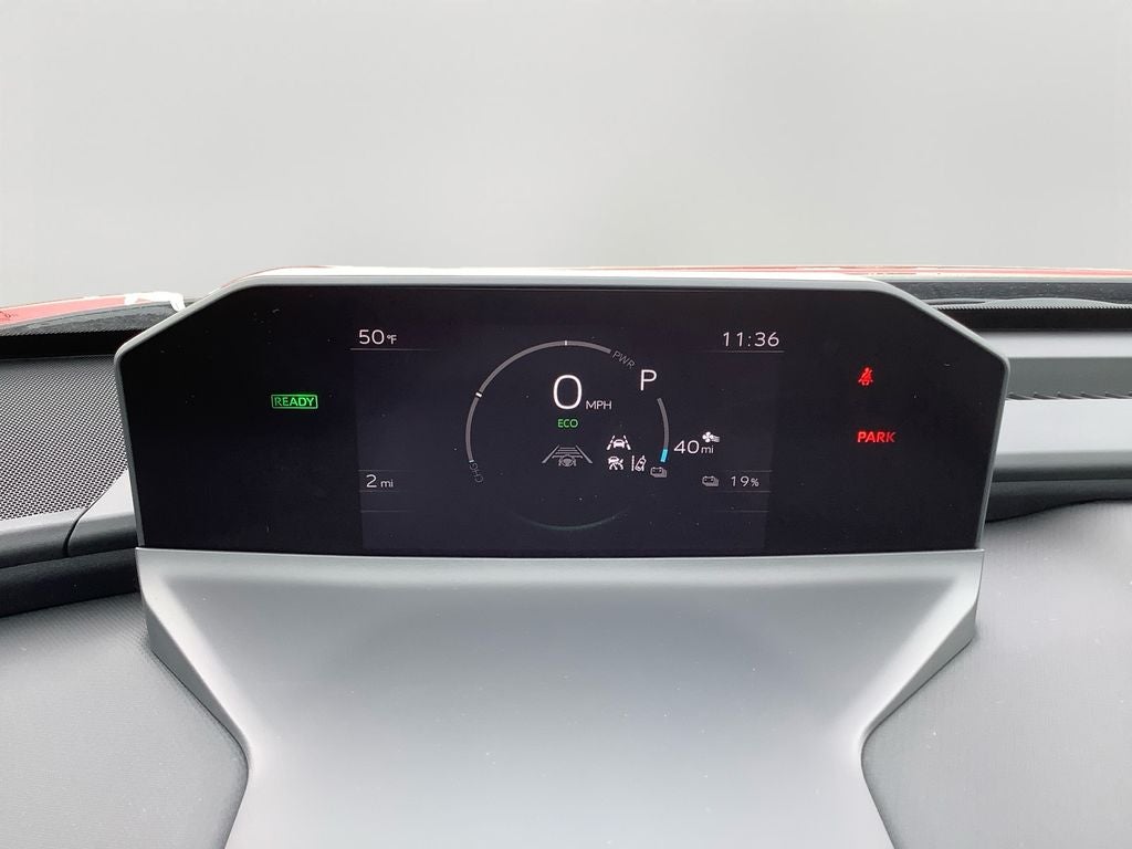 - Top-mount Multi-Information Display (MID) with indicators and 7-in. LCD display with speedometer, charge meter, power output meter, drive mode indicators, instrumentation and customizable settings, odometer, tripmeters, clock, outside temperature, rear passenger seatbelt indicators, fuel economy information, trip timer, charging information and settings, and warning messages