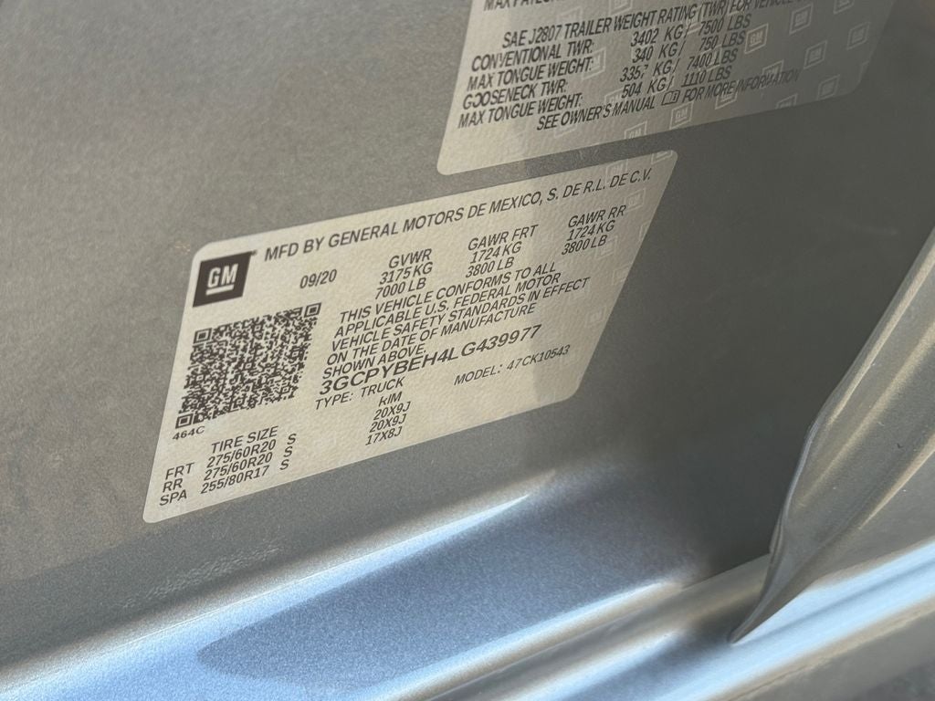 - Tires, 275/60R20 all-season, blackwall